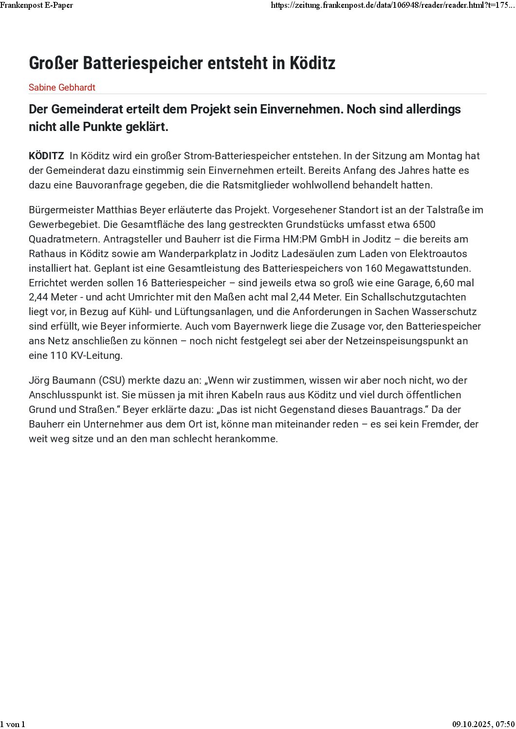 Am Rathaus in Köditz, sowie am Wanderparkplatz in Joditz, haben wir im Sommer 2025 unsere ersten 2 AC – Ladesäulen in Betrieb genommen.